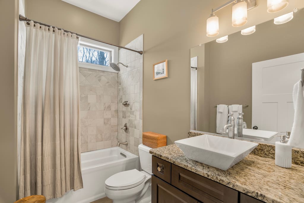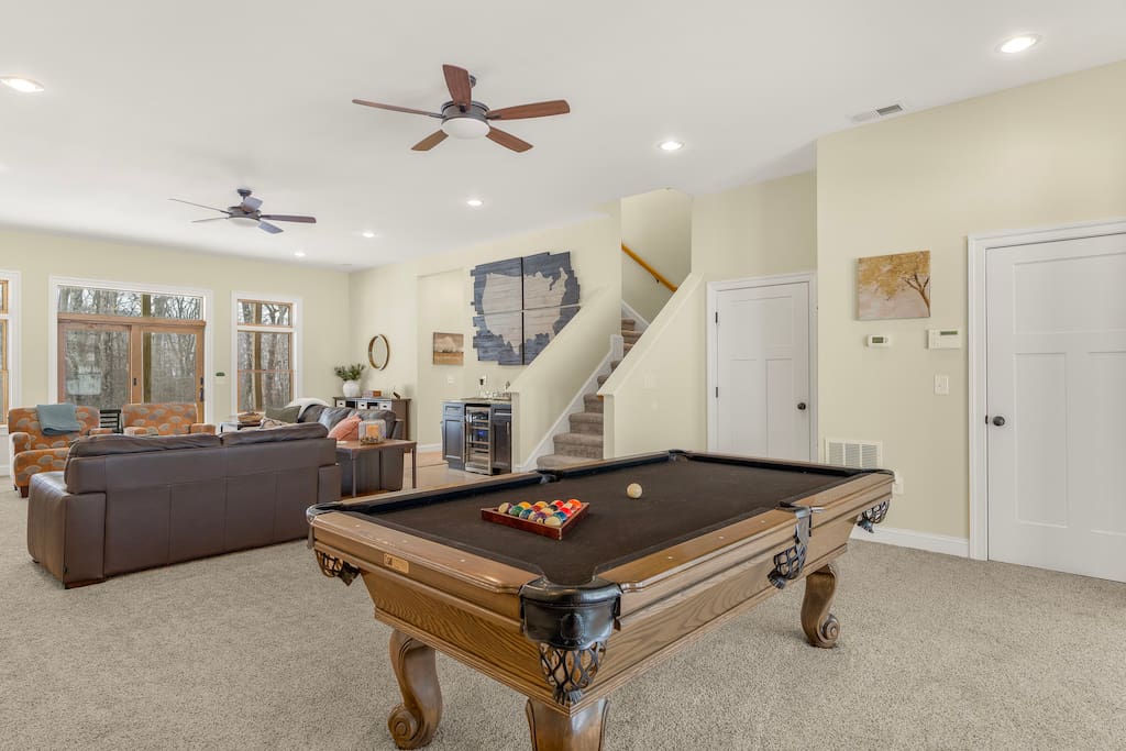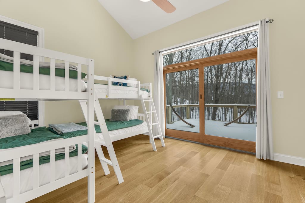 There's a ton to do in the area! Bear Ridge Retreat is about a mile to the ski slopes and a few minutes’ drive to all the dining, attractions, and hiking at Wintergreen. If you’re willing to venture a bit further, some of the best hiking trails in the state are off the Blue Ridge Parkway (15 minutes from the house), and there are over dozen wineries, breweries, and distilleries within a 30 minute drive. During the summer, enjoy Sherando Lake and Lake Monocan with sandy beach entrances, or take a dip in the heated community pool. The home layout is as follows: Upper level: - Living room with working propane fireplace and big screen TV - Dining area for 10, plus room for 4 more at the kitchen bar - Fully stocked kitchen with granite counters and stainless appliances - BR 1: Primary bedroom with king bed and deck access. Ensuite bathroom features double vanity, soaker tub, and gorgeous tile shower - BR 2: King bedroom with deck access - BR 3: Bunk bedroom with 2 sets of twin-over-twin bunks, also with deck access - Hall full bath with tiled shower/tub combo - Upper deck features comfortable seating area around propane fire table (propane provided), dining table and chairs, and gas grill Lower level: - Second living room / game room with smart TV, pool table, wet bar, and arcade machine - BR 4: King bedroom with deck access - BR 5: King bedroom with deck access - Hall full bath with tiled shower/tub combo - Laundry room with full size washer and dryer - Lower patio with sitting area and a hot tub Other things to note: - Bear Ridge Retreat is pet friendly! We welcome up to 2 dogs with a $100 flat fee. Please include any dogs in the "guests" section of the reservation. - We provide our guests $1500 of coverage for accidental damage to the property or its contents. The cost of this is already embedded in the cleaning fee. - Wintergreen offers hiking, skiing, snowboarding, tubing, swimming, dining, spa, ropes course, golfing, and much more. - The property can accommodate 4 to 5 cars, depending on whether you're comfortable blocking one in the driveway. - Wifi is fast with a strong signal throughout the house and decks. All bedrooms, plus the living room and game room, feature smart TVs where you can access all the main streaming services. - We provide a fully stocked coffee bar with multiple coffee drip and Keurig options - Linens and towels provided - Guests can enjoy free community pool access in the summer season (though the HOA rules stipulate no more than 6 guests at a time, and the permitted hours are 2-6pm). - Pack n play and high chair provided - Please respect our neighbors! If you are disrespectful / loud and asked to vacate, there will be no refund. Also, quiet hours are from 10PM to 8AM. - No candles, fireworks, or open fires (except at the provided firepit, if applicable) - No refunds due to bad weather - We do require a separate rental agreement, which we will send a link to e-sign after you book. There are no additional fees beyond those listed here.