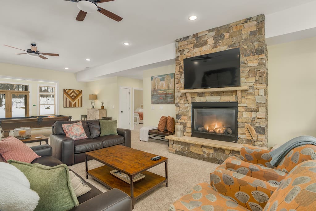 Welcome to Bear Ridge Retreat, a pristine and spacious 5BR home in Wintergreen. You'll love the open floor plan and vaulted ceilings of the main living area, with plenty of space for multiple families to spread out. The lower level features an add'l living space with TV area, pool table, and wet bar. With 5 bedrooms (4 with kings), the house sleeps 12 comfortably. Managed by Chris at New School Hosting- click on my profile to see more reviews. Plus, pet friendly!